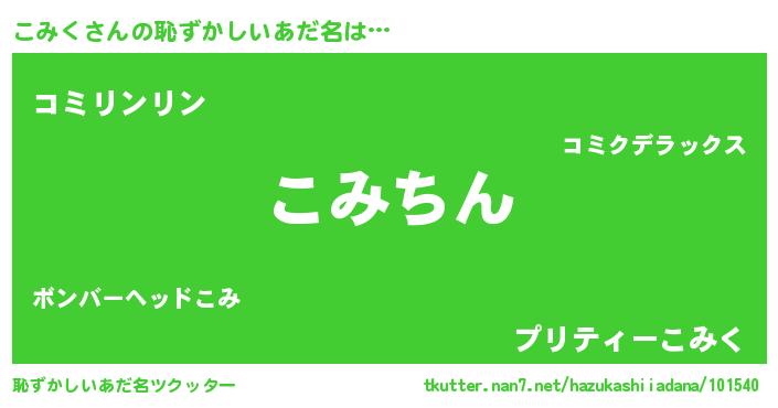 | ヘコむあだ名 | 『こみく(苦笑)』『こみっ子』 |
