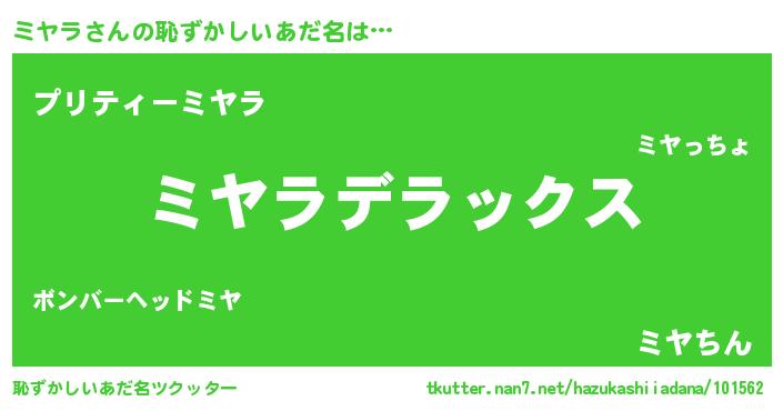 | ヒーロー風カッコイイあだ名 | 『最強戦士ミヤラ』『スーパーミヤラ』 |