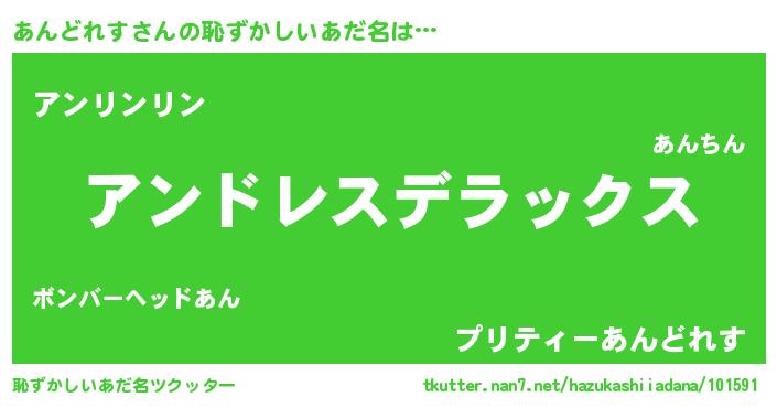 | 意味不明あだ名 | 『住所不定無職あんどれす(10歳)』 |