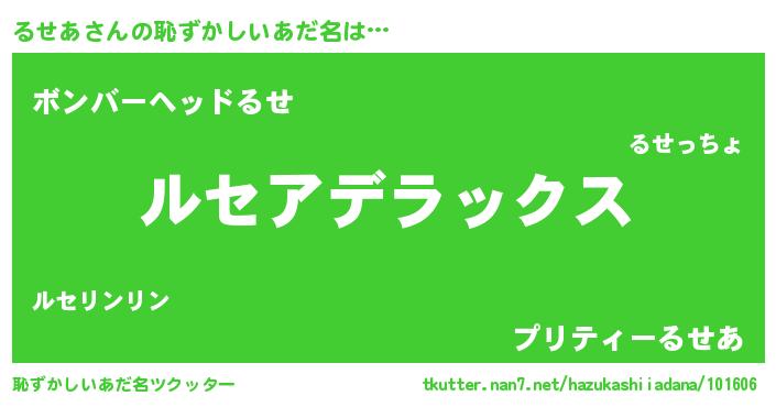 | 意味不明あだ名 | 『自称るせあ』『眠気覚ましガムるせあ味』 |