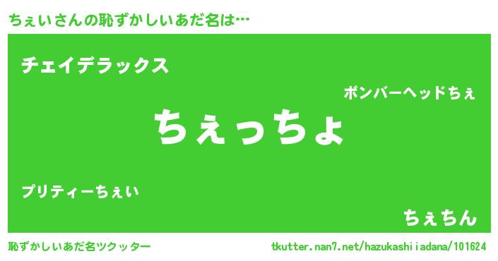 | 男性向けラノベタイトル風あだ名 | 『やはりちぇいの青春ラブコメはまちがっている 』 |