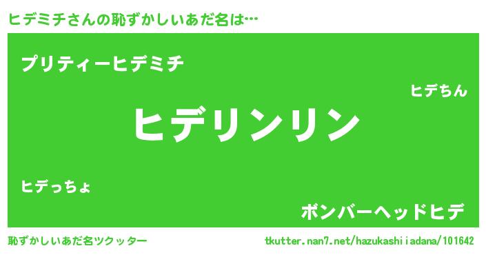 | 男性向けラノベタイトル風あだ名 | 『ヒデミチの嫁は女の子じゃないと思った?』 |