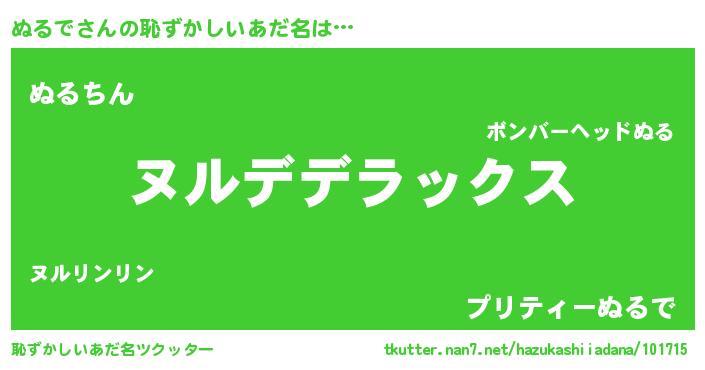 | ヘコむあだ名 | 『ぬるで(笑)』『ぬるっふぃ~』 |