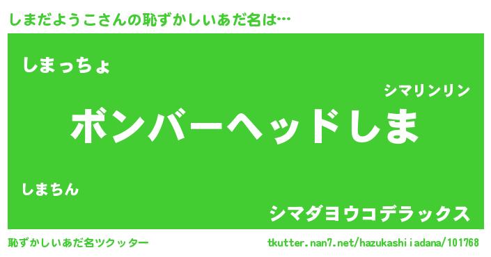 | ヘコむあだ名 | 『なまこ酢』『しまお』 |