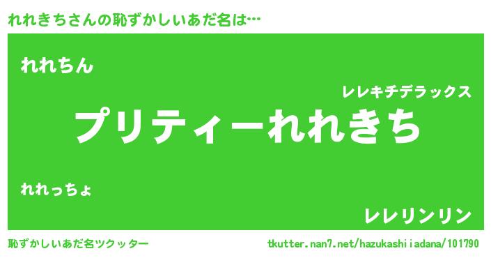 | 男性向けラノベタイトル風あだ名 | 『れれきちの憂鬱』『レレキチスレイヤー』 |