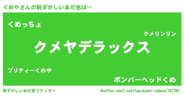 | 男性向けラノベタイトル風あだ名 | 『転生したらくめやだった件』 |