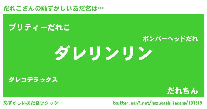 | 欧米人風あだ名 | 『ウサインだれこ』『トリンドルだれこ』 |