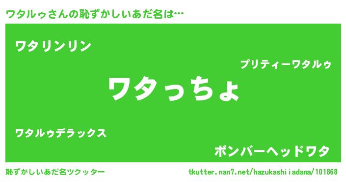| 男性向けラノベタイトル風あだ名 | 『ワタルゥに滅ぼされるだけの簡単なお仕事です』 |