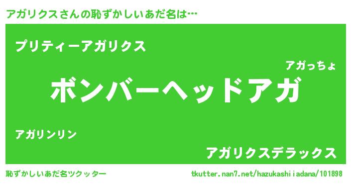 | ヒーロー風カッコイイあだ名 | 『正義の使者アガリクス』『仮面アガダー』 |