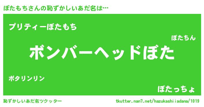 | ヒーロー風カッコイイあだ名 | 『正義の使者ぼたもち』『ネオボタモチ』 |