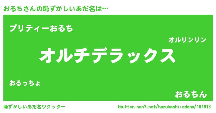 | ヒーロー風カッコイイあだ名 | 『超時空戦士オルチ』『スーパーオルチ』 |