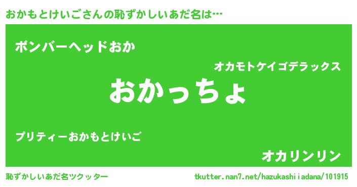 | 意味不明あだ名 | 『おかもとけいごフォーエバー』 |