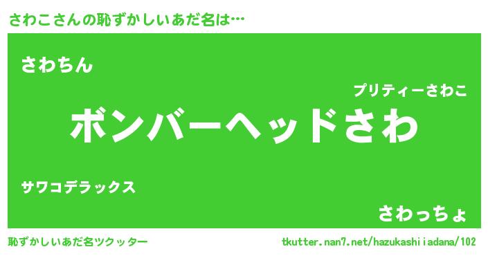 | 男性向けラノベタイトル風あだ名 | 『サワコスレイヤー』 |