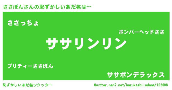 | 胡散臭い通販商品みたいなあだ名 | 『信頼と実績のサプリメント…その名も「ささぼん」』 |