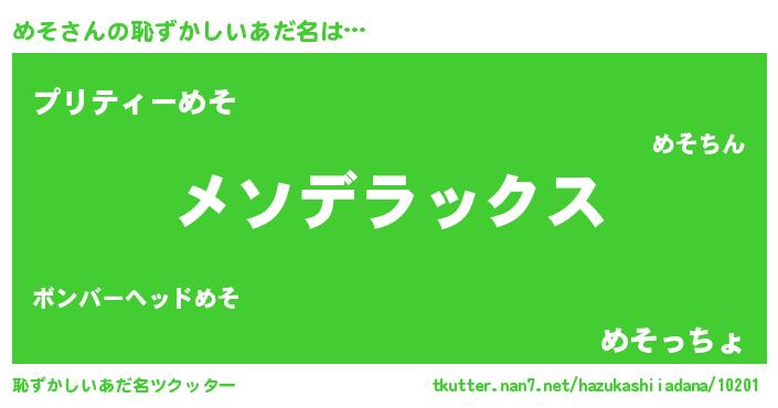 | ヘコむあだ名 | 『めそもー』『なまこ酢』『めそ(笑)』 |