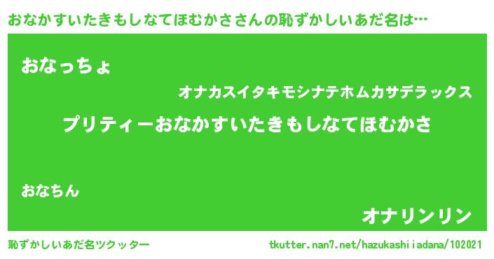 | 胡散臭い通販商品みたいなあだ名 | 『億万長者になれる水晶球…その名も「おなかすいたきもしなてほむかさ」』 |