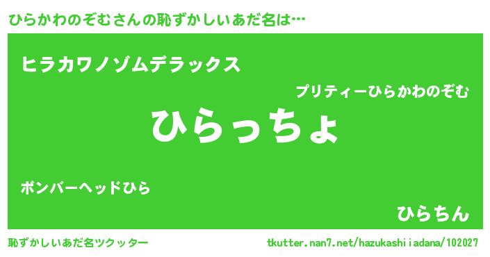 | 料理風あだ名 | 『ひらかわのぞむごはん』 |