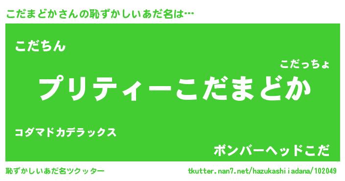 | ヘコむあだ名 | 『こだにゅー』『こだまどか(小並感)』 |