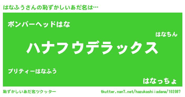 | 意味不明あだ名 | 『住所不定無職はなふう(6歳)』 |