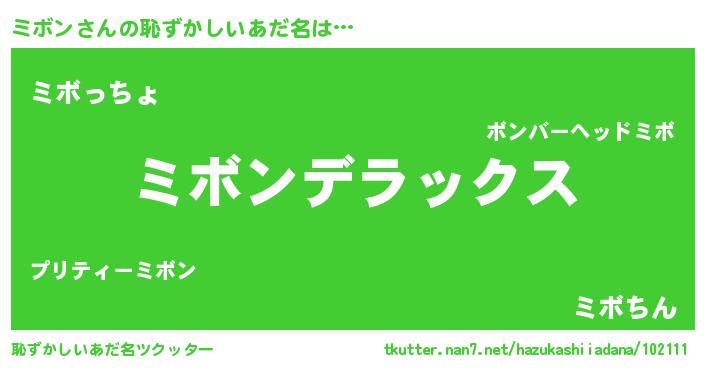 | ヒーロー風カッコイイあだ名 | 『究極戦士ミボン』『ウルトラミボンマン』 |