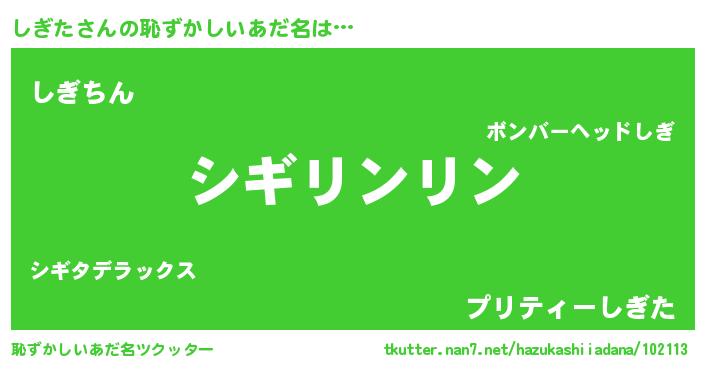 | 意味不明あだ名 | 『とにかく怪しいしぎた』 |