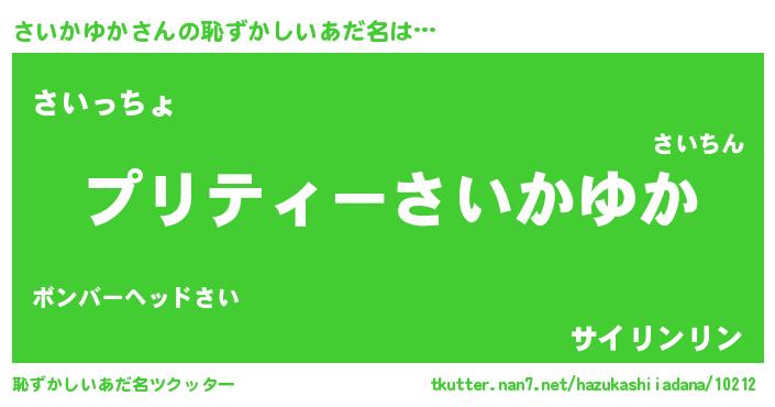 | ヒーロー風カッコイイあだ名 | 『スーパーサイカユカ』『仮面サイダー』 |