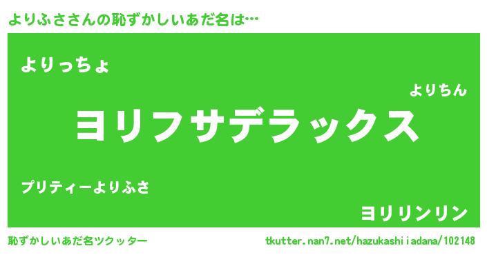 | 意味不明あだ名 | 『自称よりふさ』『よりふさフォーエバー』 |