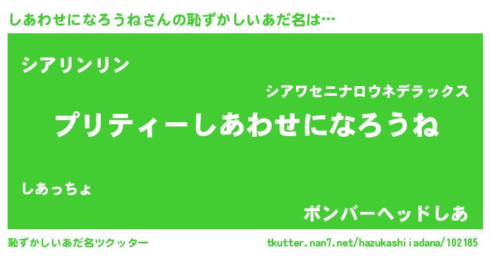 | 男性向けラノベタイトル風あだ名 | 『シアワセニナロウネアートオンライン』 |