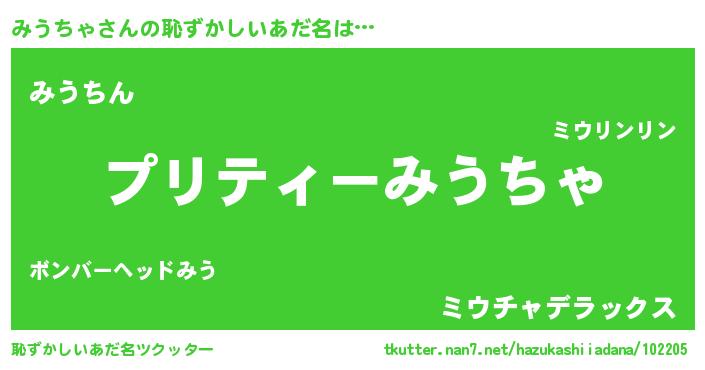 | ヒーロー風カッコイイあだ名 | 『スーパーミウチャ』『仮面ミウダー』 |
