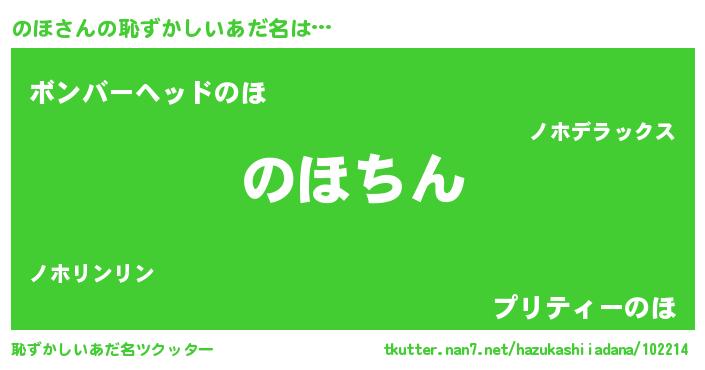 | ヘコむあだ名 | 『のほ(小並感)』『のほふぇ~』 |