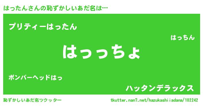 | 意味不明あだ名 | 『はったんフォーエバー』『自称はったん』 |