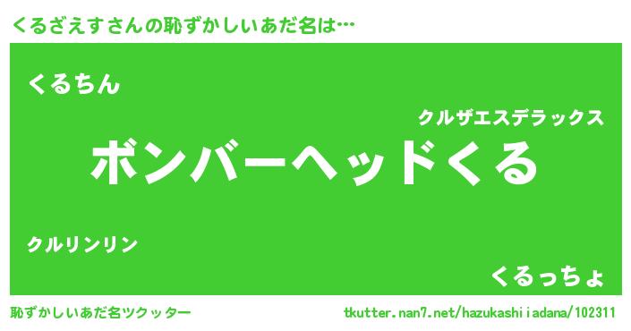 | ヒーロー風カッコイイあだ名 | 『慈愛の使者くるざえす』『仮面クルダー』 |
