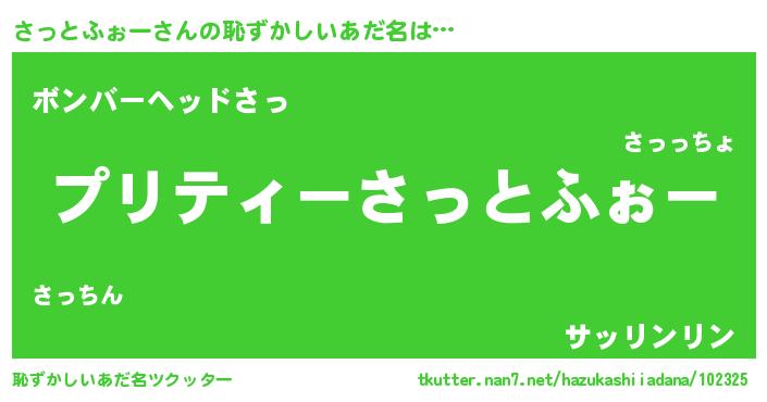| 伝説のあだ名 | 『伝説のスナイパーさっとふぉー』 |