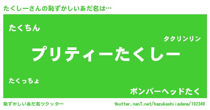 | ヘコむあだ名 | 『たくっふぃ~』『たくしー(遠い目)』 |