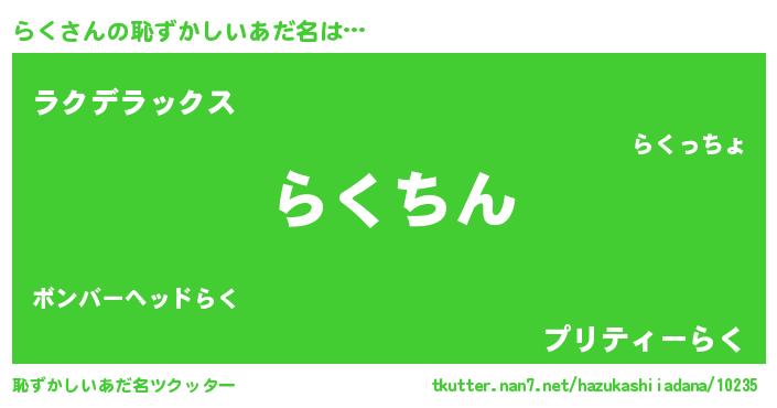 | ヘコむあだ名 | 『らく(震え声)』『らくにー』『豆乳』 |