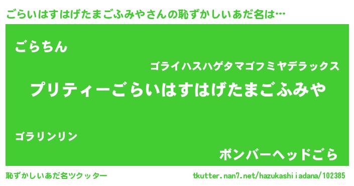 | 男性向けラノベタイトル風あだ名 | 『ごらいはすはげたまごふみやの憂鬱』 |