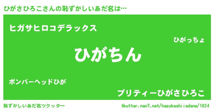| ヘコむあだ名 | 『ひがさひろこ(遠い目)』『ひがにゅー』 |