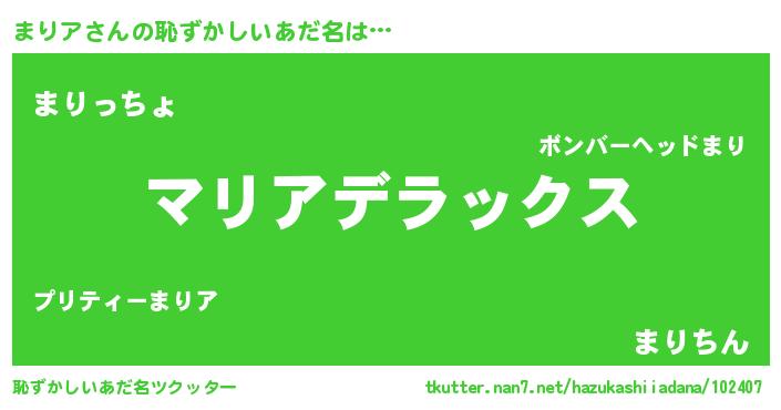 | ヘコむあだ名 | 『つくし』『まりア(笑)』『まりもー』 |