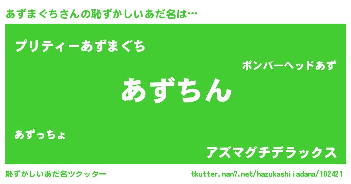 | ヘコむあだ名 | 『あずまぐち(小並感)』『あずにー』 |