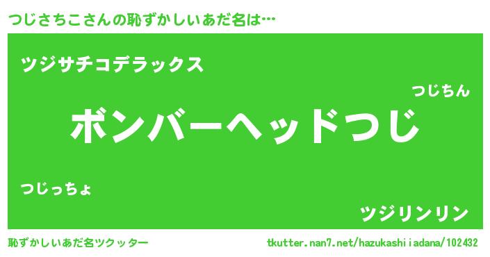 | 男性向けラノベタイトル風あだ名 | 『ツジサチコスレイヤー』 |