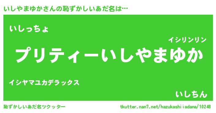 | ヒーロー風カッコイイあだ名 | 『スーパーイシヤマユカ』『仮面イシダー』 |