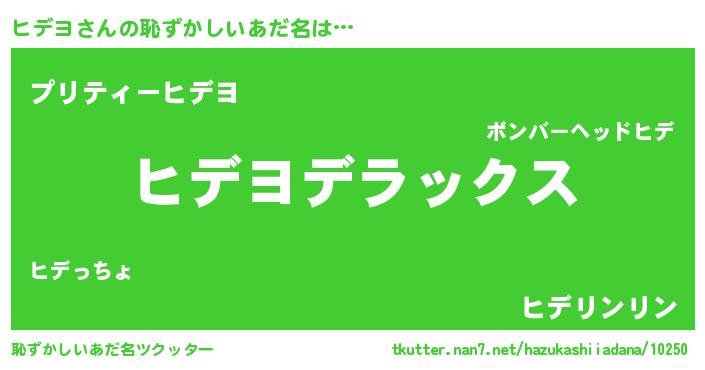 | 男性向けラノベタイトル風あだ名 | 『魔弾の王とヒデヨ』『ヒデヨの憂鬱』 |