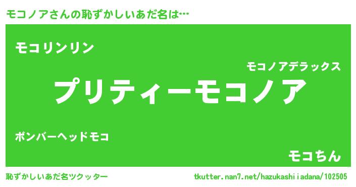 | 男性向けラノベタイトル風あだ名 | 『モコノアの憂鬱』 |