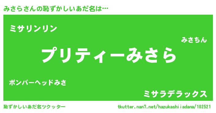 | 胡散臭い通販商品みたいなあだ名 | 『モテモテ間違いなし霊験あらたかなお札…その名も「みさら」』 |