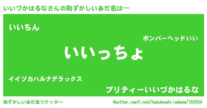 | 男性向けラノベタイトル風あだ名 | 『いいづかはるなに滅ぼされるだけの簡単なお仕事です』 |