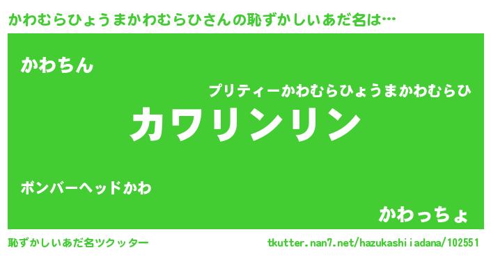 | 意味不明あだ名 | 『とにかく怪しいかわむらひょうまかわむらひ』 |