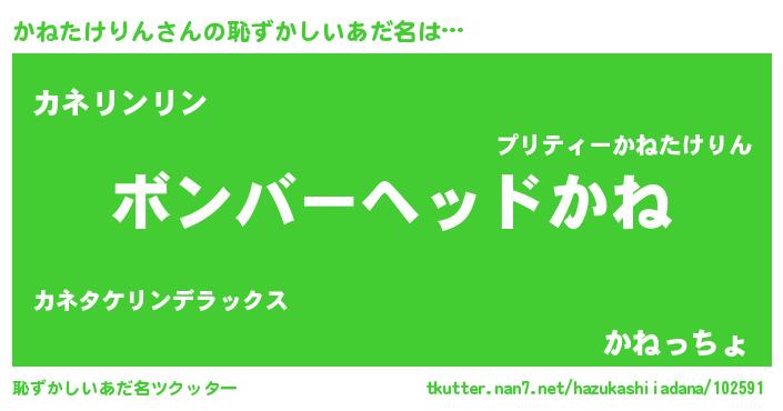 | 男性向けラノベタイトル風あだ名 | 『ノーゲーム・ノーカネタケリン』 |