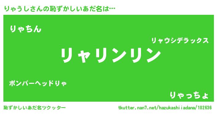 | 女子向けラノベタイトル風あだ名 | 『りゃうしの卵を拾いまして』 |