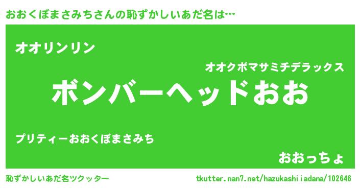 | ポケモン風あだ名 | 『オックウザ』『ヒオオクボマサミチ』 |