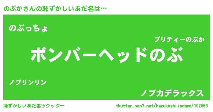 | ヒーロー風カッコイイあだ名 | 『仮面ノブダー』『正義の使者のぶか』 |